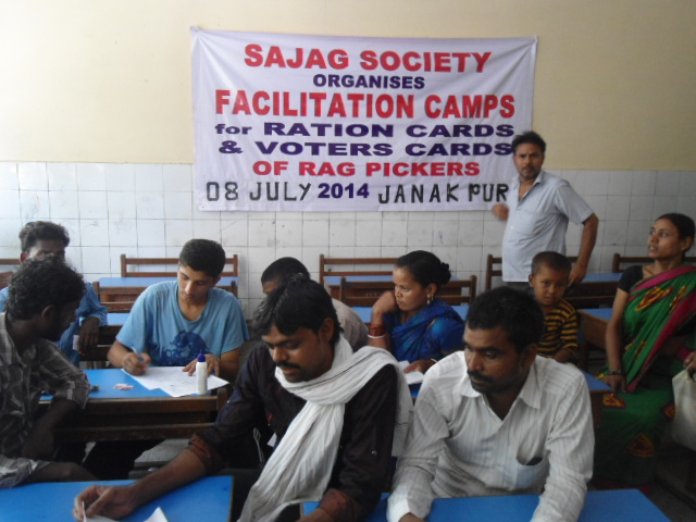 Greetings from KKU! I am glad to inform you all that Sajag/Kachra Kamgar Union (KKU) has conducted a very successful campaign for enrollment of rag-pickers to the electoral rolls of Delhi and also facilitated their applications for ration-cards under recently passed Food Security Act. It was a month-long intensive campaign which started from 12th June 2014 and continued till 11th July 2014. In this campaign, we covered thirty rag-picker clusters which fall under ten Assembly Constituencies of three (South, South-west & West) districts of Delhi. We also covered ten Circles of Food and Supplies Department of Delhi.