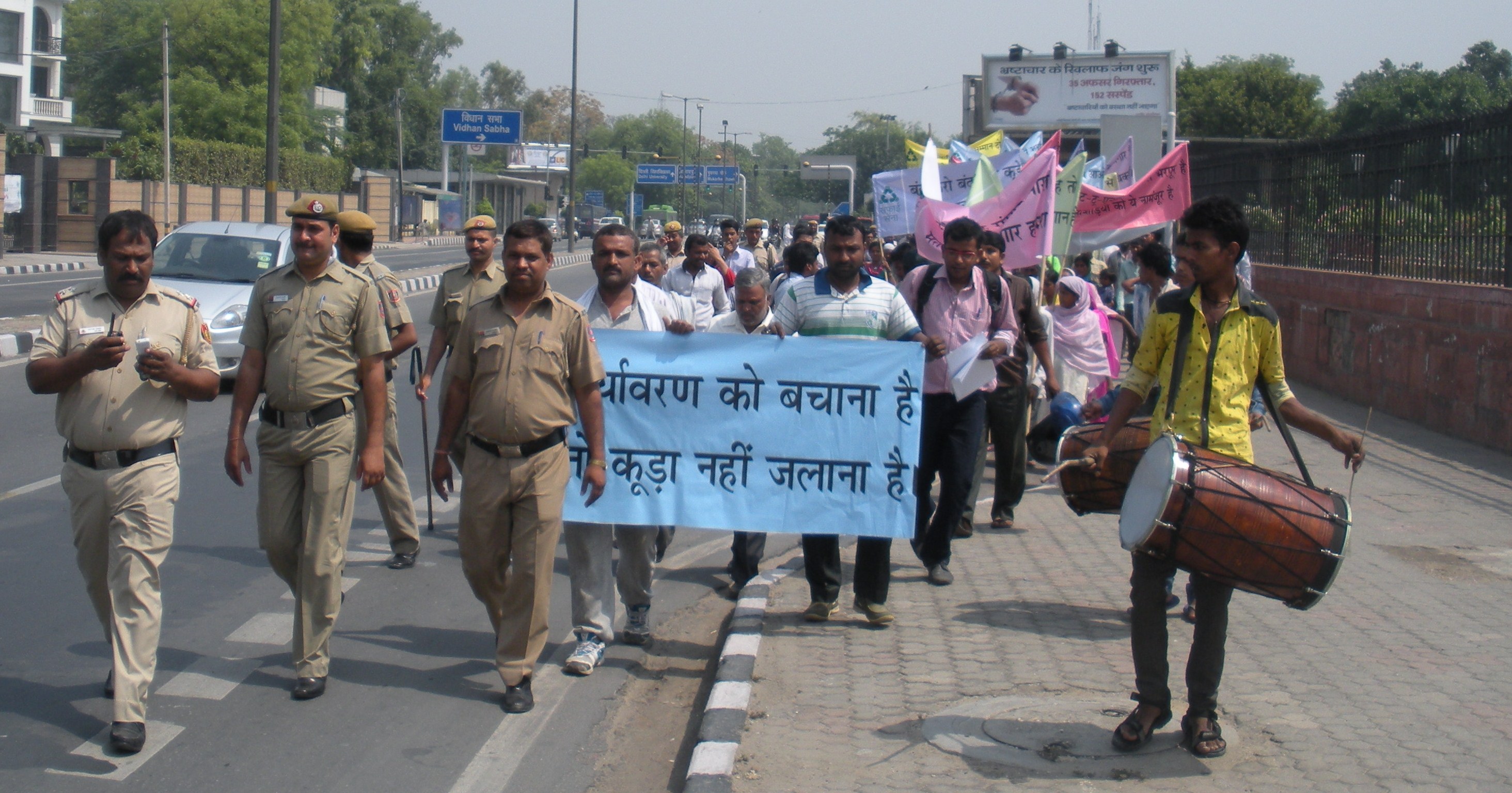 The event started at 9 am with over 500 Kabaddiwallas and other waste recyclers from different locations of Delhi gathering at the Vidhan Sabha metro station Gate no. 2. They marched towards the Chief Minister’s residence and registered their protest by chanting slogans, carrying banners, placards and beating drums.