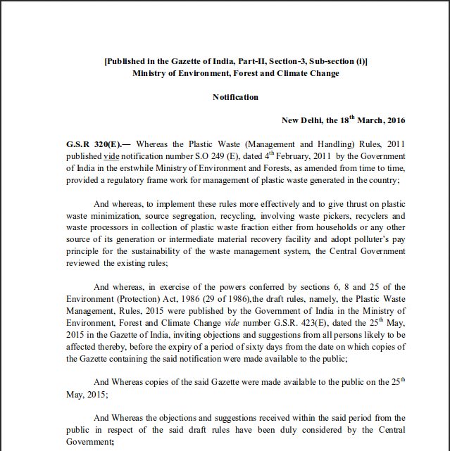 Plastic Waste Management Rules 2016
