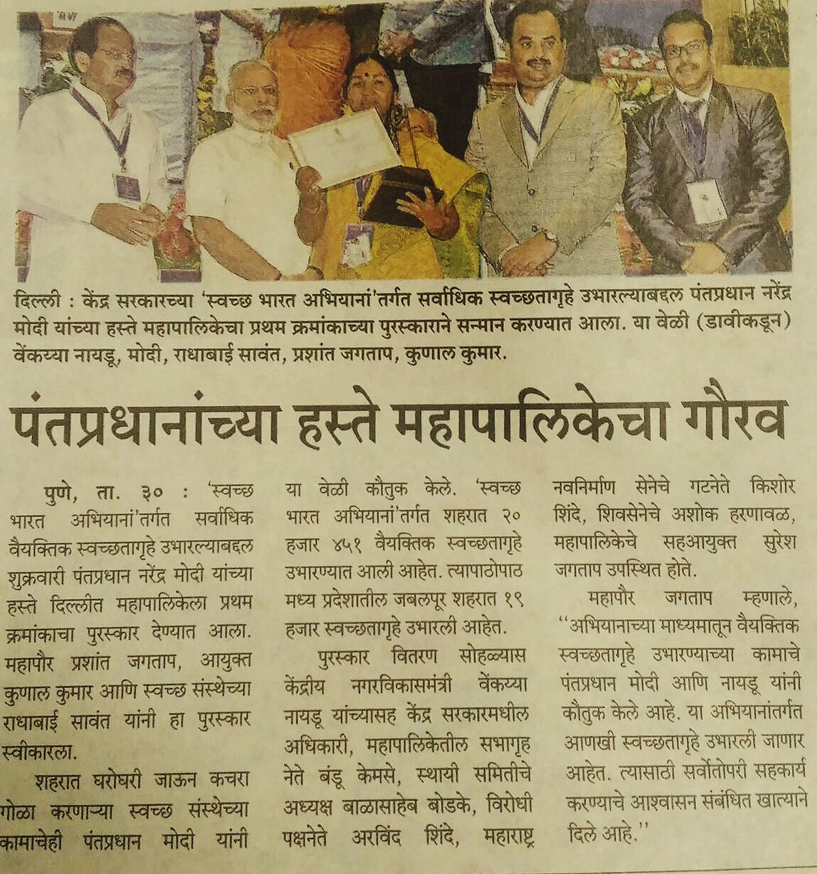 Wastepickers Cooperative- SwaCH & Pune Municipal Corporation Awarded by PM Modi